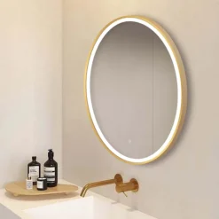 Arezzo Brushed Brass 600mm Round LED Illuminated Anti-Fog Bathroom Mirror