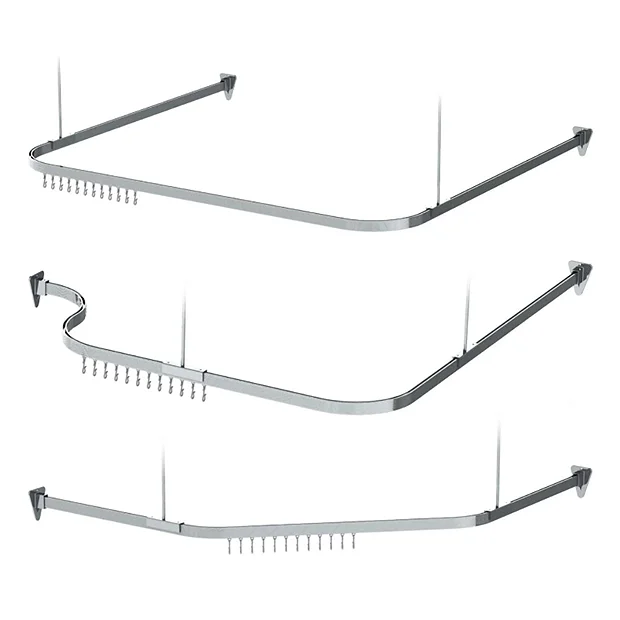 The Flexi shower curtain track from Aqualona is lightweight and easy to assemble. Its flexible design means it can be simply bent by hand into any shape. Comes complete with ceiling supports and curtain hooks.
