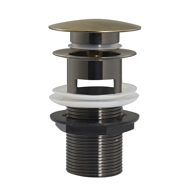 The Chatsworth Antique Brass slotted click clack basin waste is constructed from durable material with a stylish smooth antique effect finish. Waste is controlled by a simple push button mechanism for that finishing touch in your bathroom and provides excellent performance. Designed for use with basins with an overflow. Combine with one of our matching Chatsworth Antique Brass Taps (sold separately) for a perfectly harmonious traditional bathroom.Â