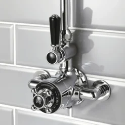Bring a touch of class to your bathroom with the Hudson Reed Topaz Exposed Valve. This traditional thermostatic shower has a sparkling chrome finish, with contrasting black ceramic detailing for a contemporary counterpoint. The shower rose has a built in diverter leading to the exposed shower valve so you can switch between the head and handset as preferred. It’s made from solid brass for durability and uses a thermostatic function to ensure you’re kept safe from scalding. The rigid riser also gives you the option to adjust the height of the water outlet for a perfectly customisable shower experience.