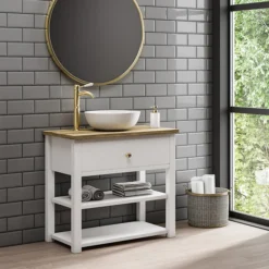 The eye-catching brushed brass Lancaster traditional tall mono basin mixer with curved spout, part of our range of traditional bathroom taps with its elegant spout design and expertly crafted white ceramic lever handle, it’s classic design will bring a touch of sophistication to your bathroom. Manufactured from solid brass with a stunning brushed finish. Single lever handle controls temperature and flow of water. Designed to be used with a counter top basin or bowl.
