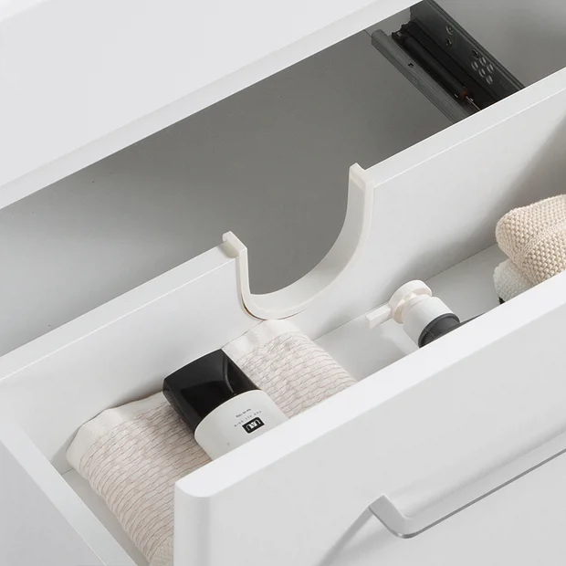 This Odyssey White 1 Drawer Vanity Unit is a stunning addition to any bathroom. With its subtle curved corners and a slimline elegant, polished chrome handle, this vanity unit is sure to make a statement. Made from high quality material with a matt pure white finish, this vanity unit is designed to be durable and easy to clean. The single drawer provides ample storage space and features soft-close technology, which ensures a smooth, close every time. With its combination of style and convenience, this Odyssey White 1 Drawer Vanity Unit is the perfect addition to any bathroom. Co-ordinating furniture is also available, so you can easily create a cohesive and stylish look.